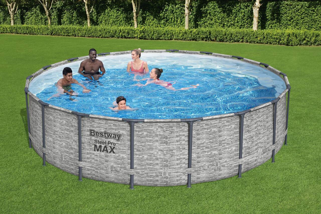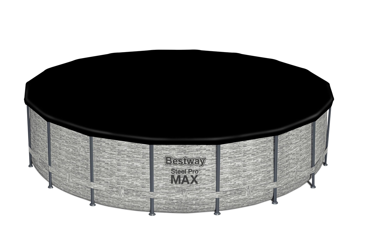 Stelażowy basen ogrodowy Bestway 5618Y o średnicy 549 cm. W zestawie pompa basenowa filtrująca wodę, drabinka ułatwiająca wejście do basenu oraz praktyczna pokrywa. Pojemność: 23 062 litrów.