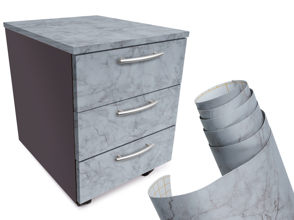 Folia rolka samoprzylepna marmur szary 1,22x50m. Nada każdemu wnętrzu niepowtarzalny charakter. Wyposażona w specjalistyczny klej kanalikowy. Dzięki temu, że jest elastyczna i termoplastyczna można ją dopasować do różnych kształtów.