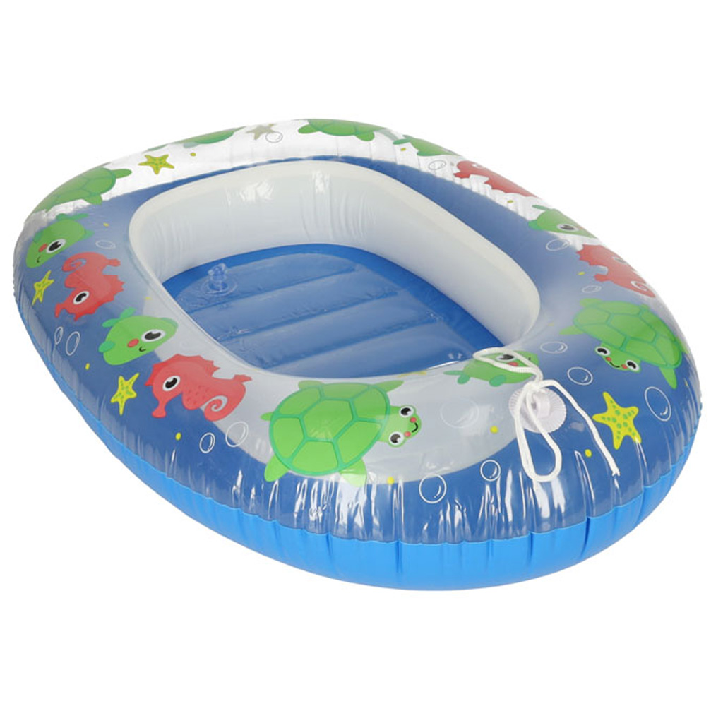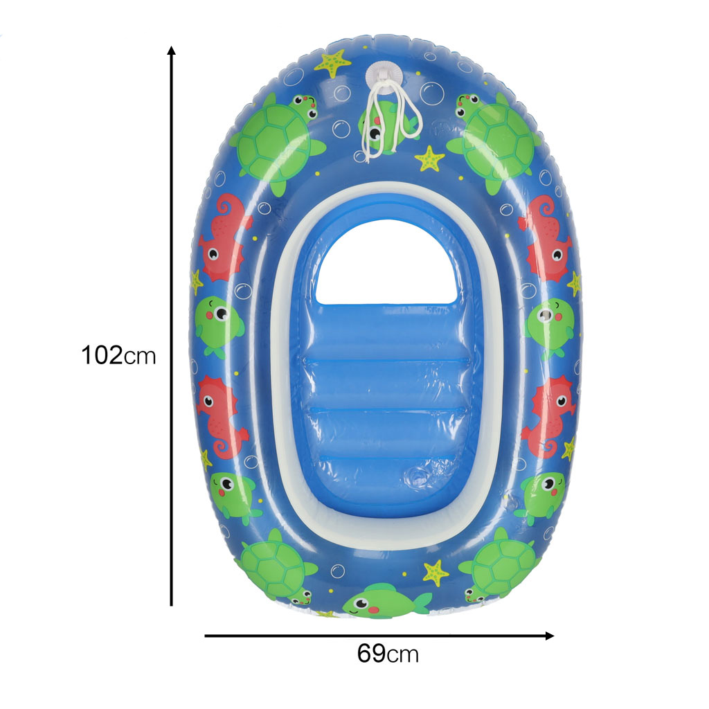 Rewelacyjny dmuchany pontonik dla dzieci. Zapewni komfortowy wypoczynek i dobrą zabawę w upalne dni. Obrzeża pontoniku posiadają nadruki koników morskich i żółwików. W zestawie: pontonik, łatka naprawcza. Kolor: niebieski. Wym.: 102x69cm.