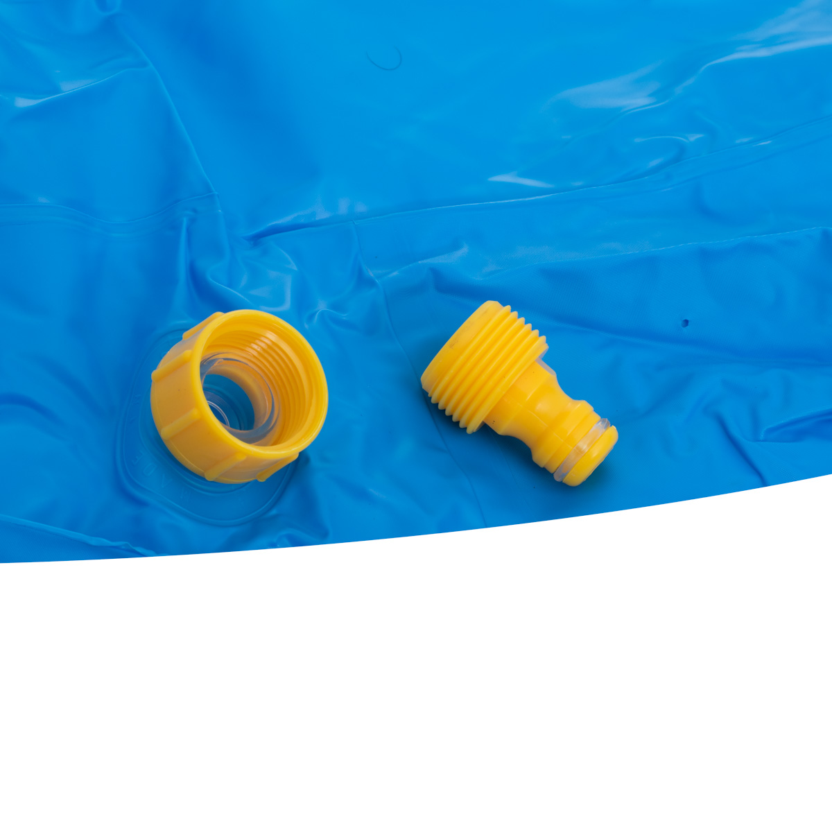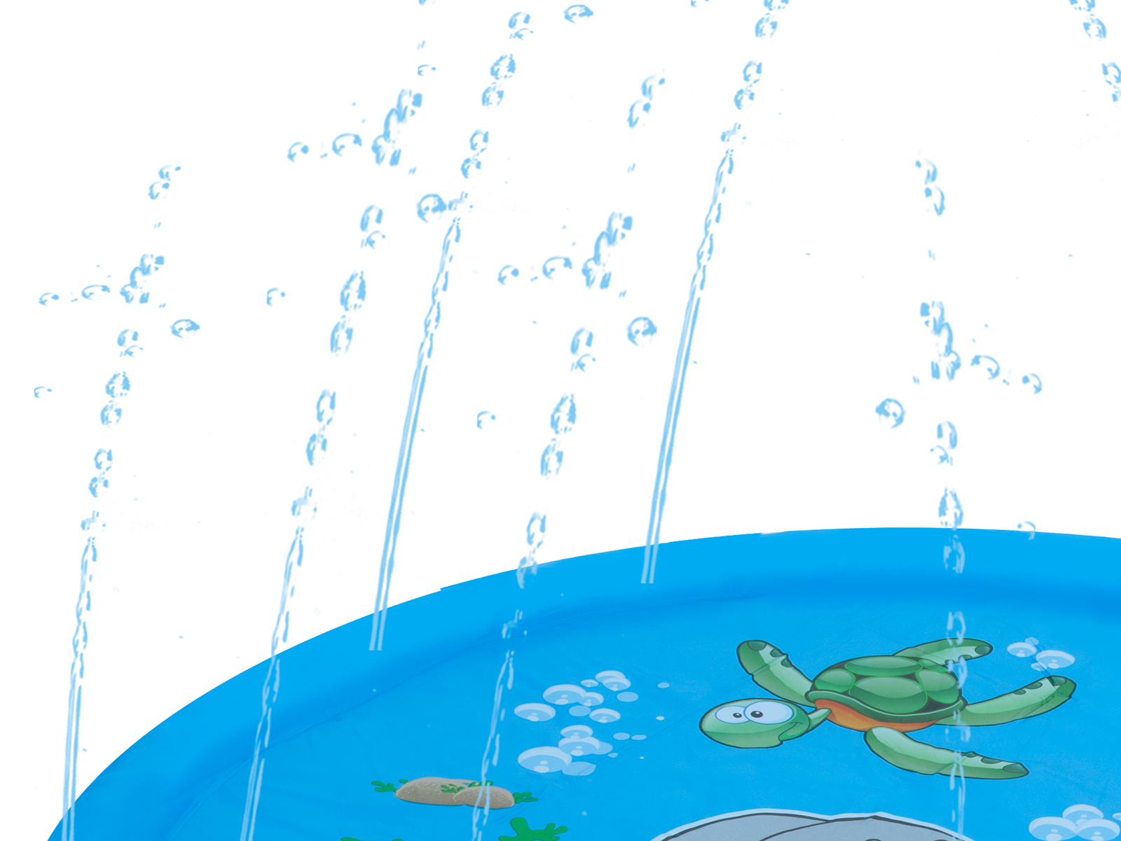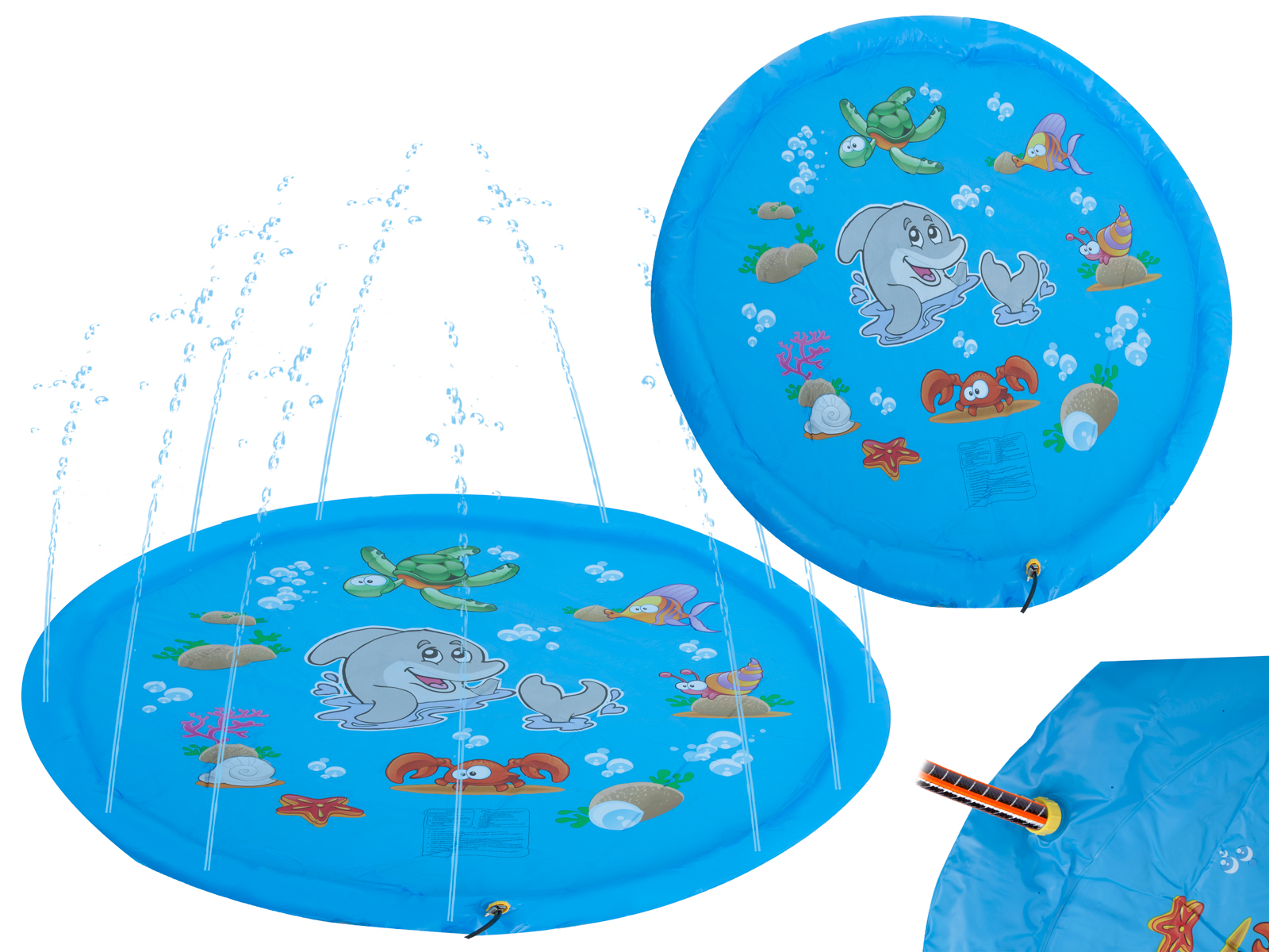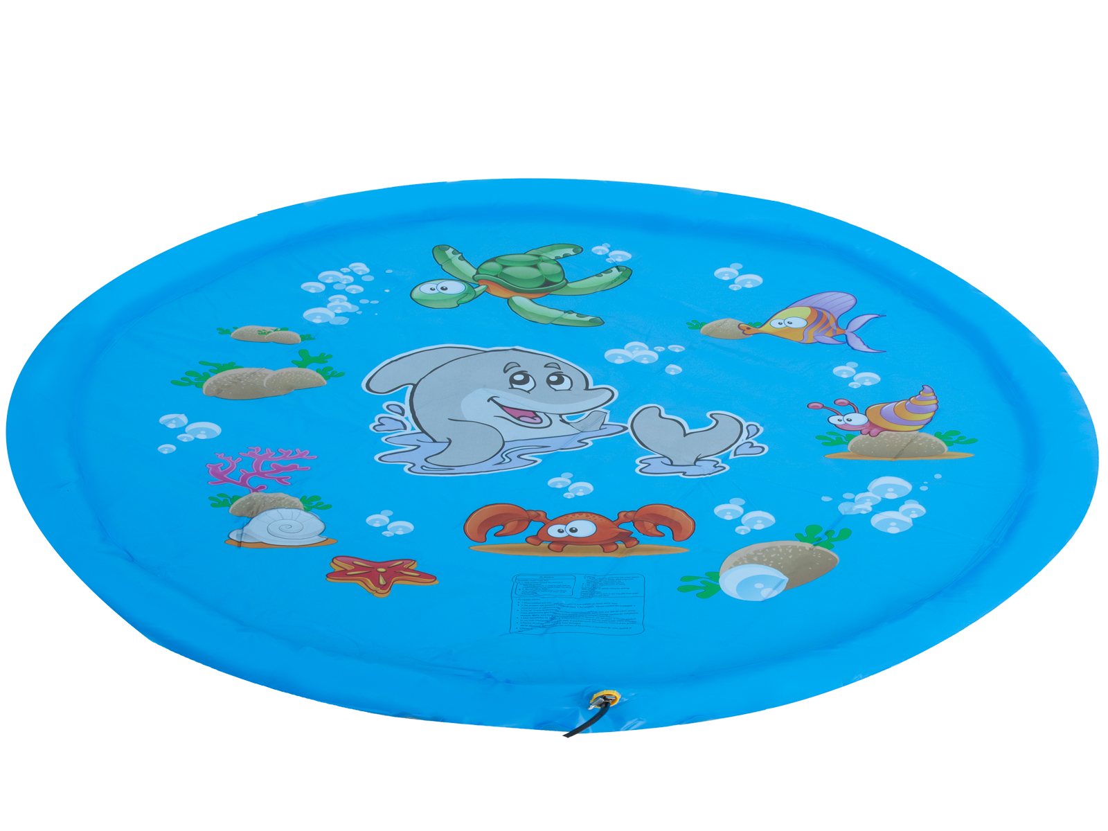 Duży, kolorowy basen dla dzieci ozdobiony morskimi stworzeniami. Wykonany z trwałego materiału PCV. Wyposażony w gwint do stworzenia fontanny. Gwarantuje doskonałą zabawę oraz ochłodę podczas upałów. W zestawie łata naprawcza. Wymiary: średnica 170cm