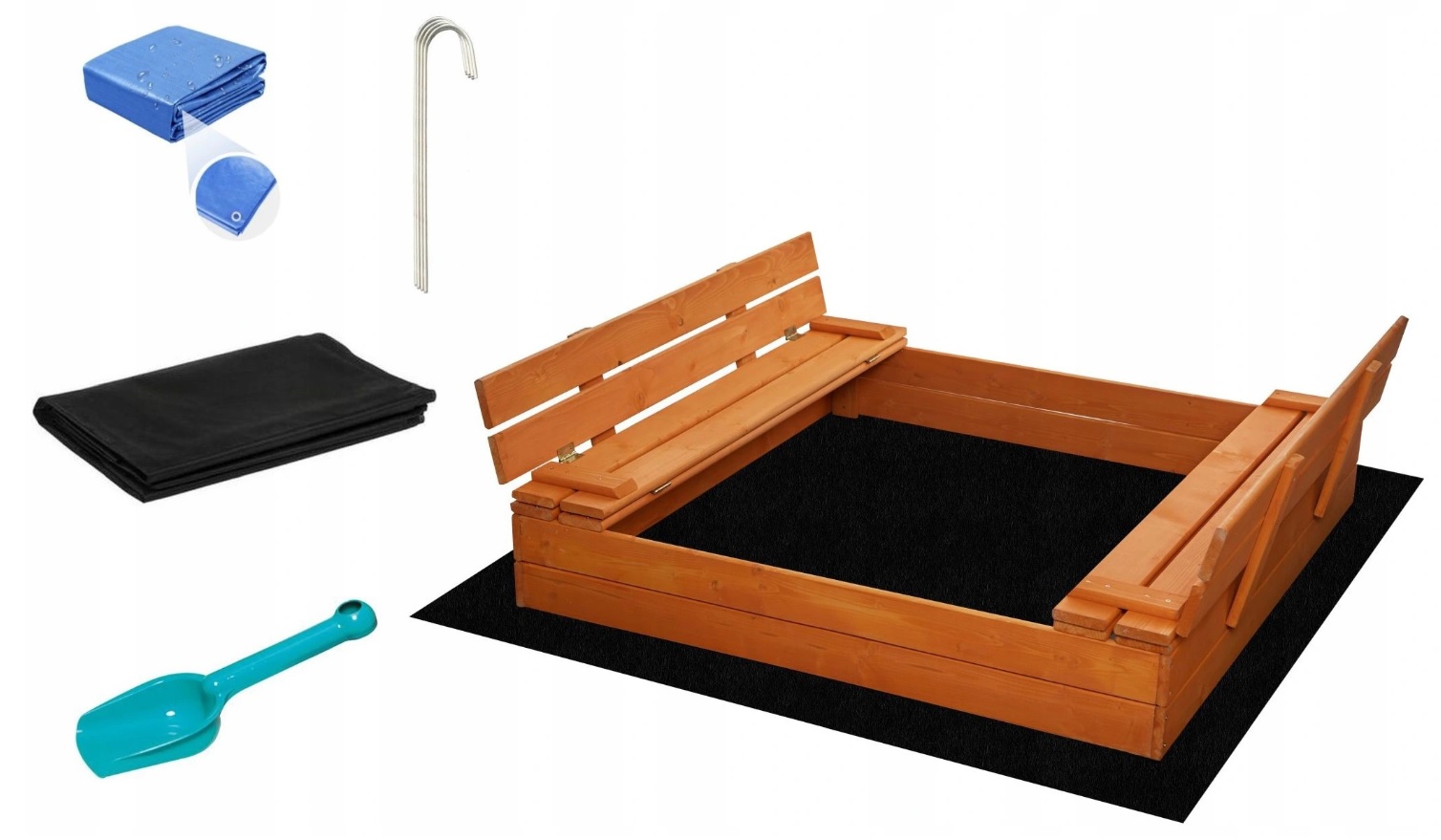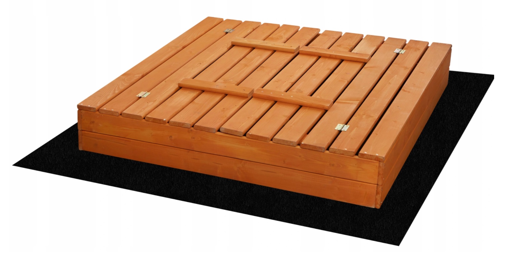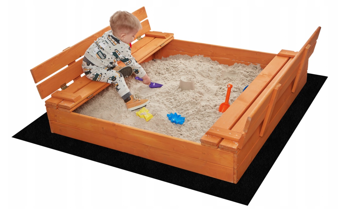 Drewniana piaskownica z praktycznymi ławeczkami z oparciem. Niezbędny na każdym placu zabaw. Możliwość złożenia ochroni piasek przed zanieczyszczeniami. Produkt wyszlifowany i impregnowany. Posiada potrzebne elementy do montażu. Wym.: 120x120x20cm.