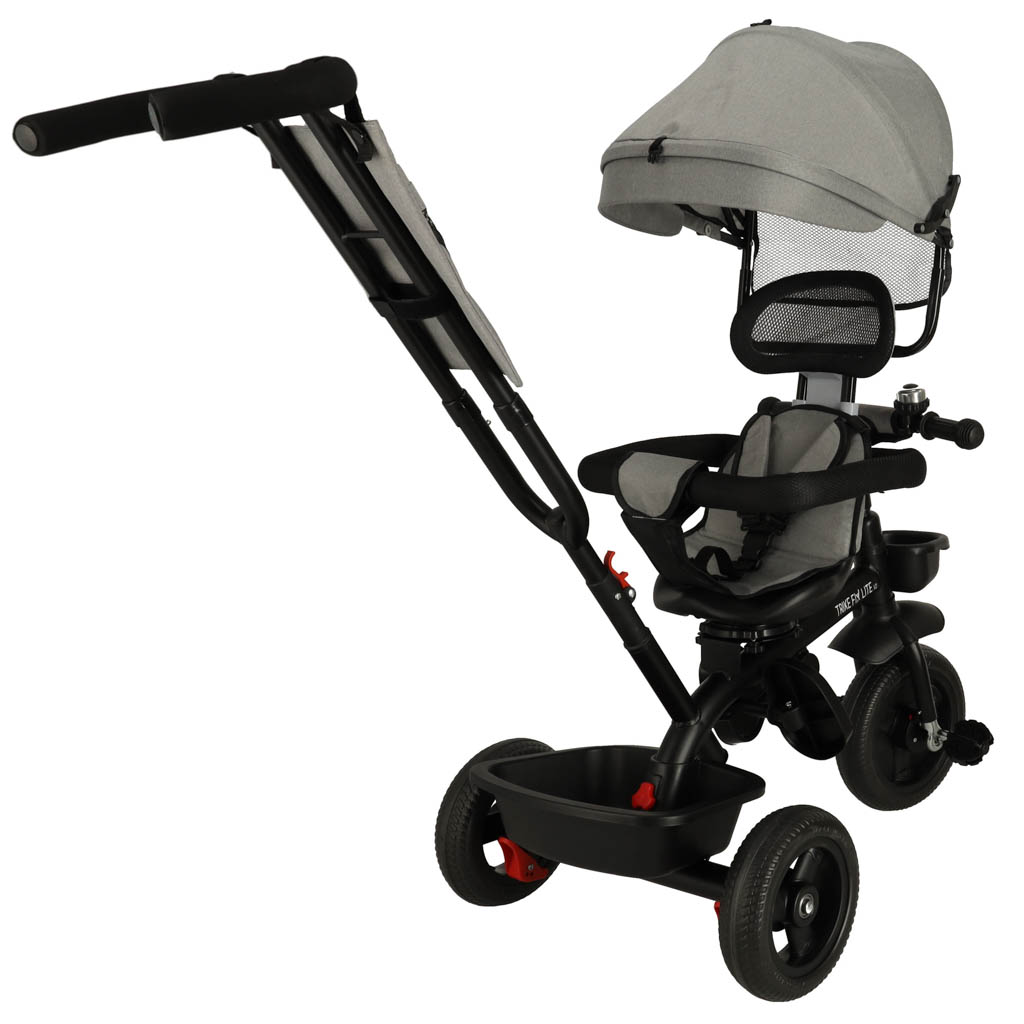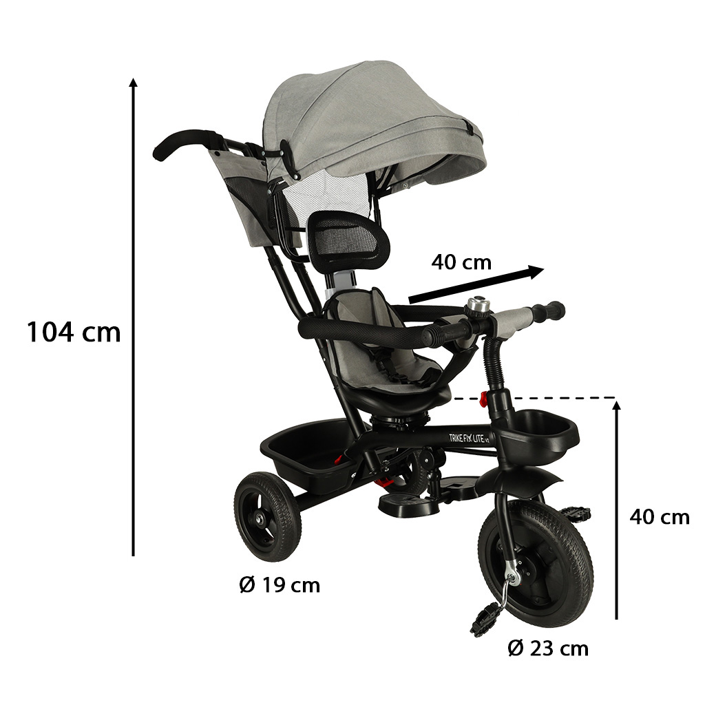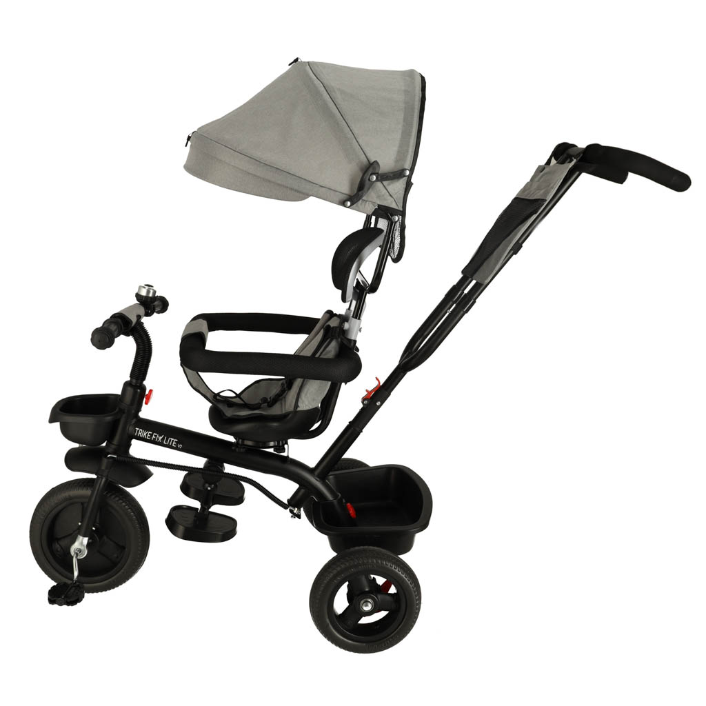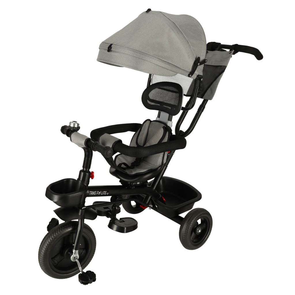 Szary rowerek trójkołowy RIKE FIX LITE V2 to produkt, który się zmienia wraz z wzrostem malucha – najpierw służy jako wózek-spacerówka, a później jako rowerek. Posiada składany daszek. Maksymalne obciążenie: 50 kg. Wiek użytkownika: 6 miesięcy – 7 lat.