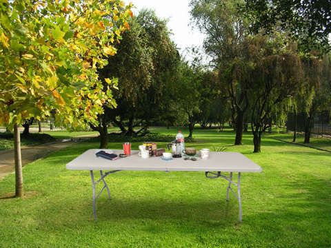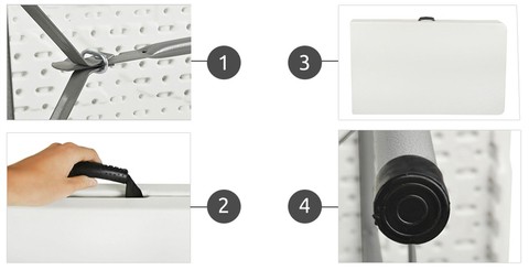 antypoślizgowe nóżki zapobiegają przesuwaniu stołusolidna konstrukcja, stalowa ramablokada zabezpieczająca stół przed złożeniemwygodna rączka do przenoszenia stołustół można złożyć w łatwą do przenoszenia walizkę